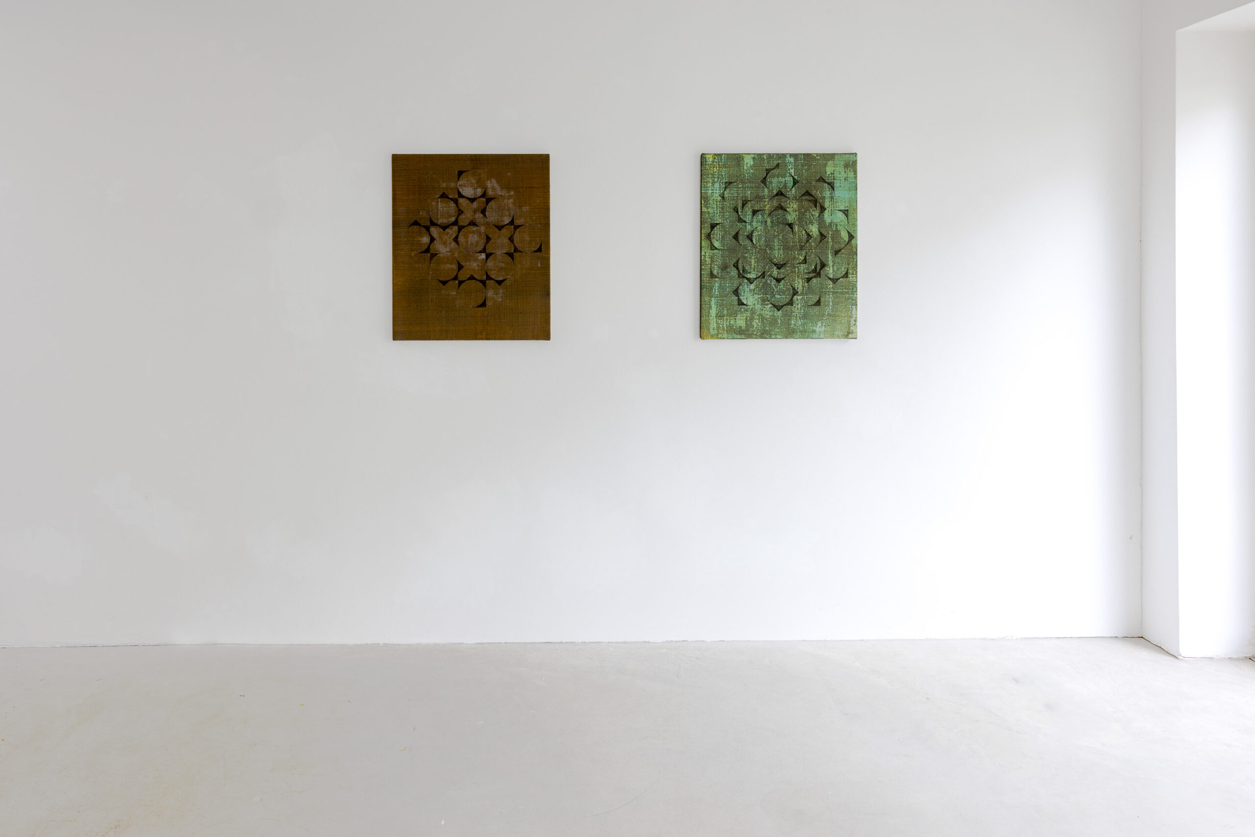 ´Claudia Larissa Artz`s umbauter Raum ist weniger der physische als der metaphysische Raum ihrer Bilder und Zeichnungen in denen sie ein eigenes, strenges Zeichensystem ausbreitet, das sich oftmals aus geometrischen Grundelementen herleitet, die zunächst als Bauelemente für den Bildraum dienen bevor sie teilweise wieder aufgelöst werden oder wie verwittert anmuten und damit darauf verweisen, dass umbauter Raum nie absolut, immer nur temporär existiert.`